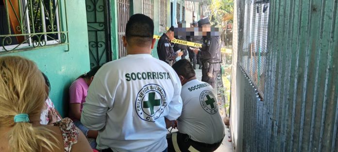 Socorristas de Cruz Verde Salvadoreña brindan asistencia a familiares de los fallecidos, mientras agentes de la PNC realizan las pericias en la escena del crimen. Foto: Cortesía, CVS.