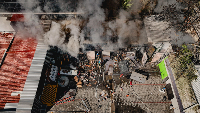 El negocio afectado cuenta con una bodega donde se almacenan insumos domésticos como vasos, platos y otros productos para el hogar, por lo que se realizaron maniobras especializadas de control para evitar la extensión del fuego.