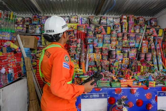 Bomberos añadió que mantiene inspecciones en ventas colectivas de pirotecnia autorizadas, como el punto ubicado en el Redondel Maferrer en San Salvador.