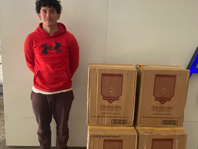 De acuerdo con el reporte, el detenido fue identificado como Marvin Noé Beza Quijada, de nacionalidad guatemalteca, quien “pretendía ingresar al país varias cajas con producto de contrabando, evadiendo los controles correspondientes”.
