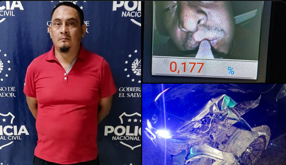 Saúl Omar Galeas Berríos manejaba ebrio, mientras llevaba a su hijo menor de edad, ocasionó un accidente de tránsito y huyó del lugar, en la colonia San Pablo, en San Miguel Centro, informó la Policía Nacional Civil (PNC).