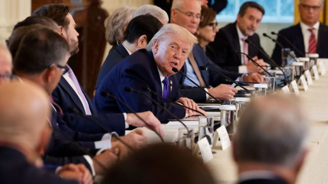 El presidente Donald Trump habla durante una reunión con ejecutivos de empresas petroleras y de gas en el Salón Este de la Casa Blanca el viernes. Chip Somodevilla/Getty Images