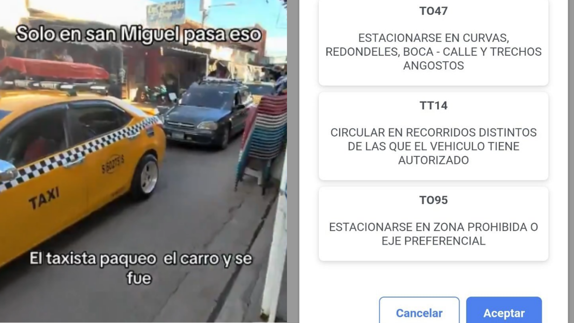 Taxi es multado por estacionarse en zona prohibida y afectar el tráfico en San Miguel
