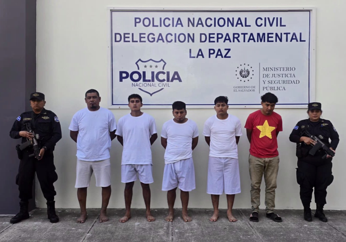 Los detenidos fueron identificados como Pedro Antonio Deras Sánchez, de 30 años; Andrés Abelino Hernández Rodríguez, de 48; Geo Esnal Martínez Zelaya, de 24; Santos Daniel Cañas Aguillon, de 25; e Isaías Eduardo Gavidia Ventura, de 24.