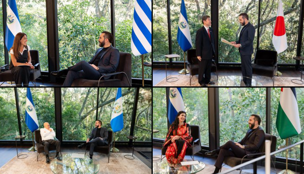 El presidente de la República, Nayib Bukele, encabezó la ceremonia oficial de recepción de cartas credenciales de los nuevos representantes diplomáticos de Japón, Guatemala, Palestina y Uruguay. Este acto protocolar formaliza la acreditación de Sano Taketoshi, Antonio Castellanos, Reena S.M. Fattouh y María Alejandro Costa como jefes de misión en suelo salvadoreño.