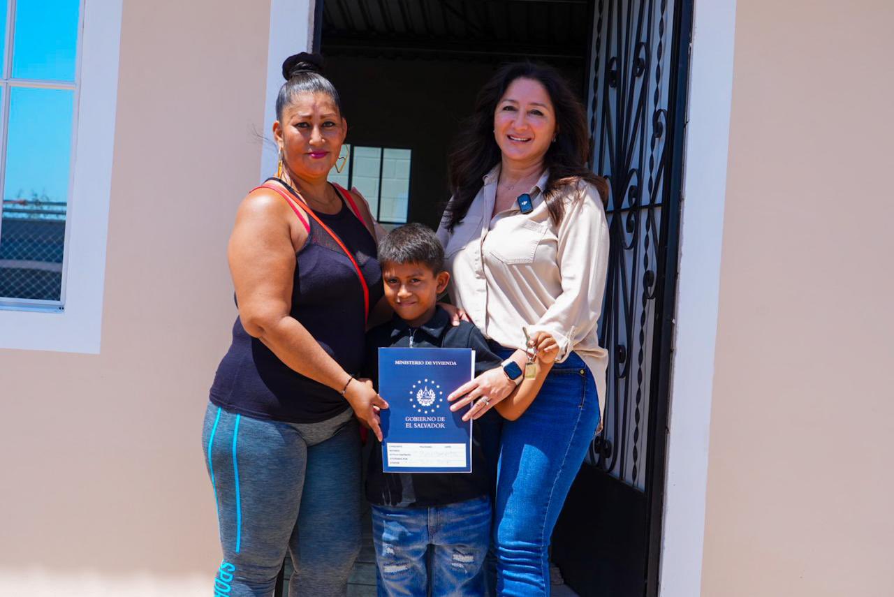La ministra de Vivienda, Michelle Sol, entregó este viernes las llaves de sus nuevas casas y escrituras de propiedad a familias del municipio de La Libertad Costa, quienes residían en zonas de derechos de vía en el sector conocido como El Faro y en la comunidad Jerusalem.