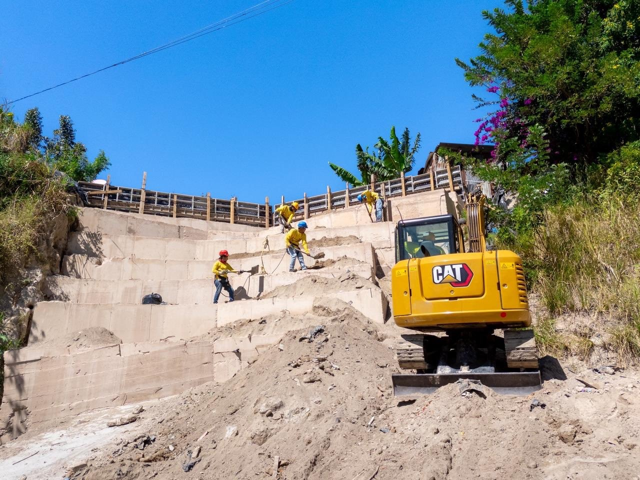 Los trabajos incluyeron la intervención de más de 16,000 metros cuadrados en taludes, la colocación de anclajes para estabilización, construcción de canaletas y drenajes, un emplantillado de concreto ciclópeo y el relleno de más de 10,000 metros cúbicos de material.