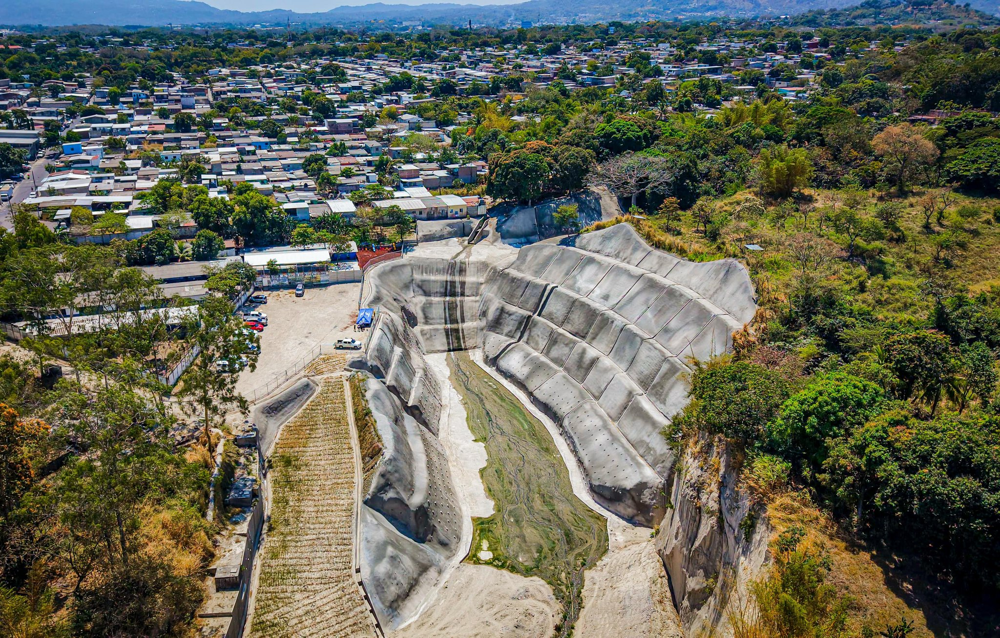 El Ministerio de Obras Públicas (MOP) entregó este lunes las obras de intervención de una cárcava que se estaba formando en la colonia Santa Eduviges, en Soyapango, con una inversión de $3.4 millones, como parte del Plan Nacional de Mitigación.