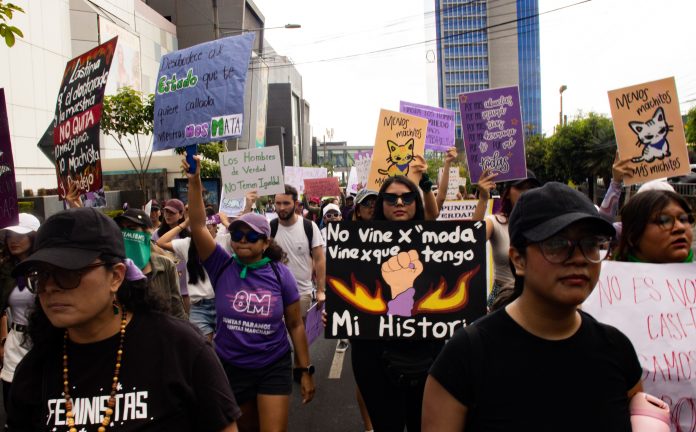 En la Plaza Divino Salvador del Mundo, las manifestantes reiteraron la necesidad de fortalecer las investigaciones en casos de feminicidio y de violencia física y psicológica contra las mujeres. De acuerdo con el Informe de Labores 2023-2024 de la Fiscalía General de la República (FGR), en ese periodo se registraron 25 feminicidios en el país.