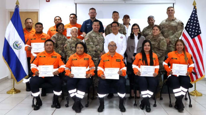 El personal de la Dirección General de Protección Civil participó en jornadas de capacitación orientadas a fortalecer las operaciones de prevención y respuesta ante emergencias, con el apoyo del Comando Sur de Estados Unidos y el Área Militar de la Embajada estadounidense en El Salvador.