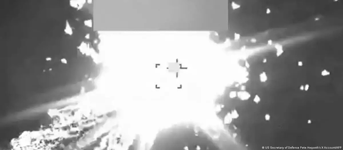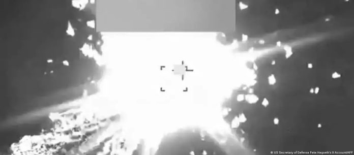 El ejército publicó un video del ataque en el que se ve una pequeña embarcación volar por los aires tras una explosión.