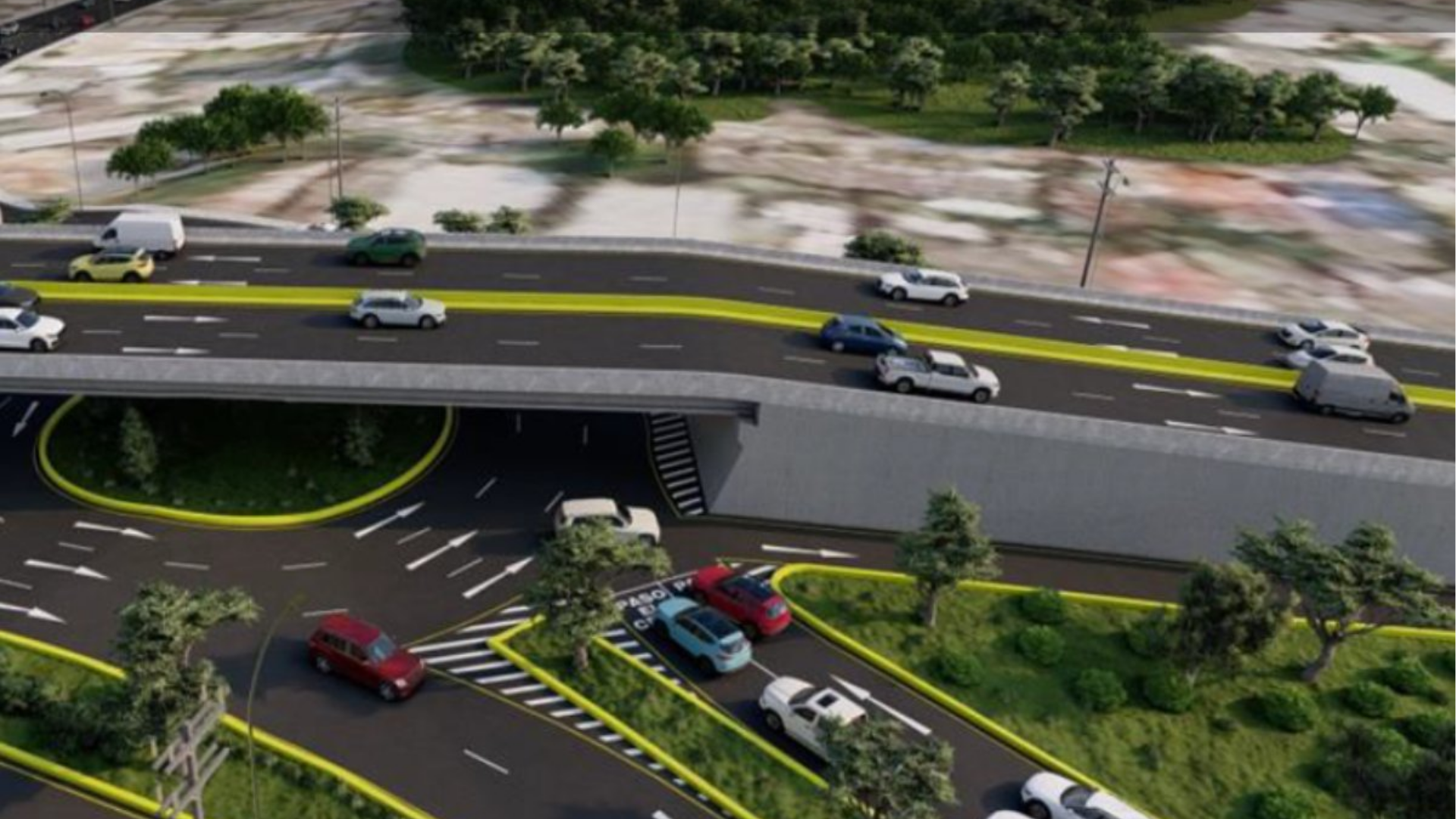 Además, se proyecta la construcción de distribuidores de tráfico y un paso peatonal a desnivel, junto con trabajos de protección estructural y drenaje para las áreas intervenidas.