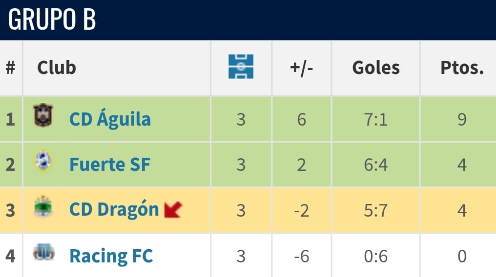 En el Grupo B está Águila, el único equipo que avanzó con paso perfecto; pasó como segundo Fuerte con 4 y, con las mismas unidades, Dragón se metió como uno de los cuatro mejores terceros.