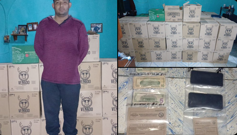 Durante el procedimiento, se incautaron un total de 114 cajas que contenían bebidas alcohólicas nacionales e internacionales, además de $1,380 dólares en efectivo.