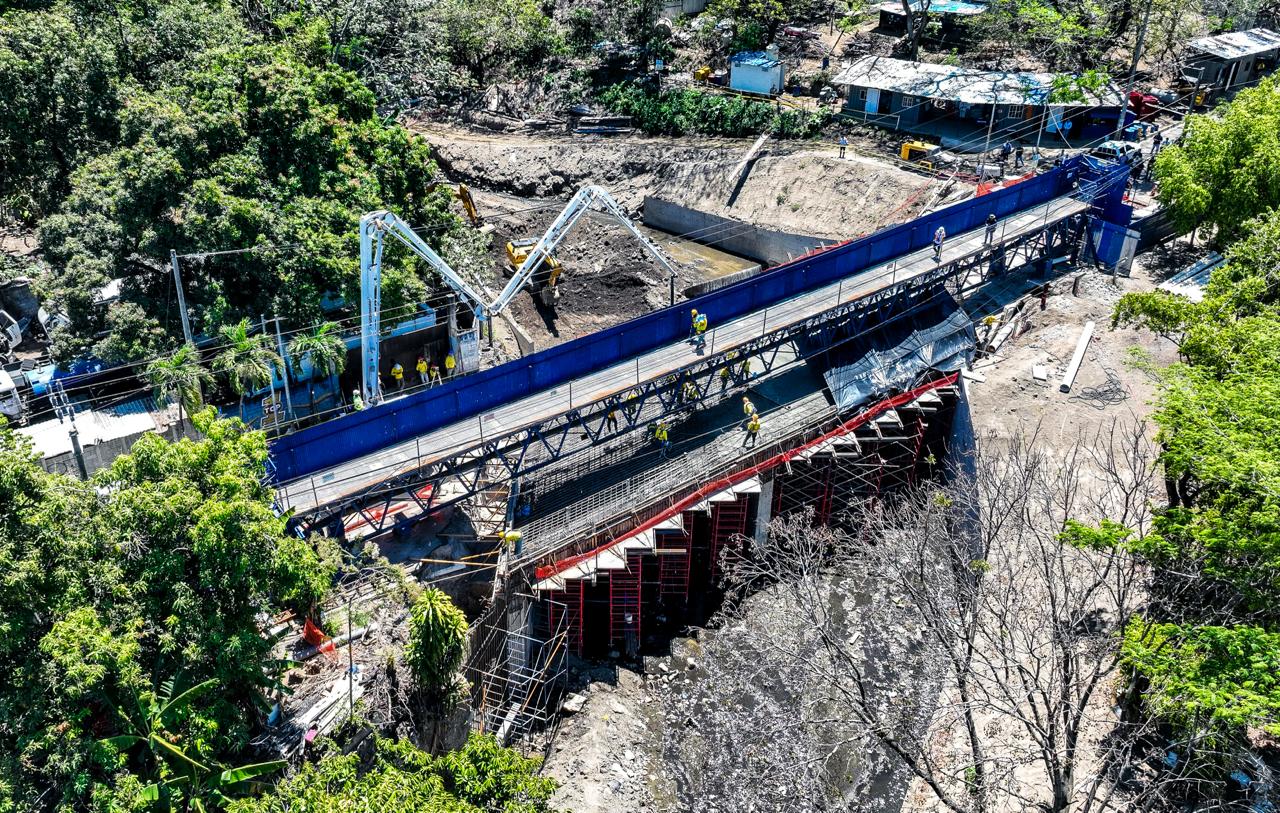 El Ministerio de Obras Públicas (MOP) reportó un 80% de avance en la construcción de un puente en Villa Lourdes, en el distrito de Colón, La Libertad Oeste, donde este miércoles se realizaron trabajos de colado de la losa.