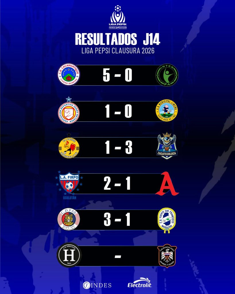 Otro resultado fundamental en el desarrollo del torneo fue la goleada 0-3 de Zacatecoluca en el Derbi Viroleño; fue la primera victoria de los ‘Tecolotes’ en el Torneo Clausura 2026. Con este resultado el equipo de Juan Pablo Buch se puso un punto por encima del Hércules en la acumulada; los ‘Helénicos’ juegan el miércoles ante Águila.