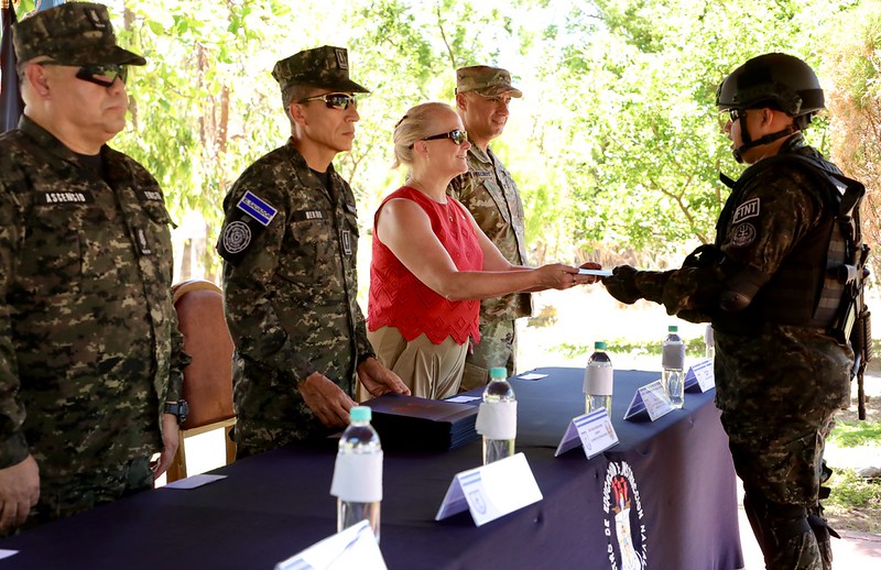 La ceremonia de clausura fue presidida por Naomi Fellows, Encargada de Negocios de la Embajada de los Estados Unidos, y el Ministro de Defensa de El Salvador, Almirante René Francis Merino Monroy.