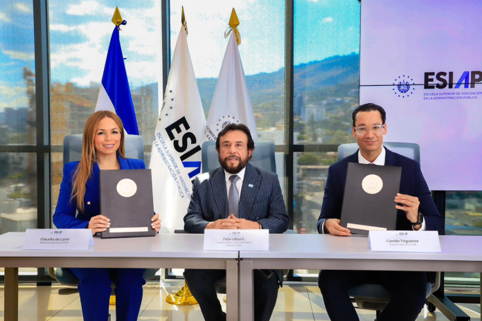 El vicepresidente de la República, Félix Ulloa, en su calidad de rector de la Escuela Superior de Innovación en la Administración Pública (ESIAP), firmó un acuerdo de cooperación con el Centro Nacional de Registros (CNR), representado por su director ejecutivo, Camilo Trigueros, con el objetivo de fortalecer capacidades institucionales.