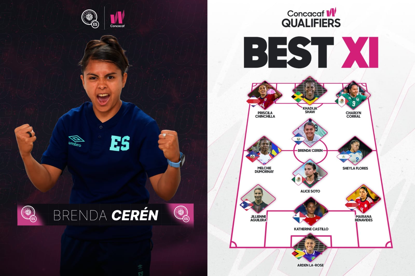 El puesto de la salvadoreña es más que merecido; Cerén anotó 5 goles: 3 ante Barbados en la goleada 13-0 y 2 ante Trinidad y Tobago, los únicos de ese juego, que terminó 2-0. Ante Barbados, además, sirvió 4 asistencias.