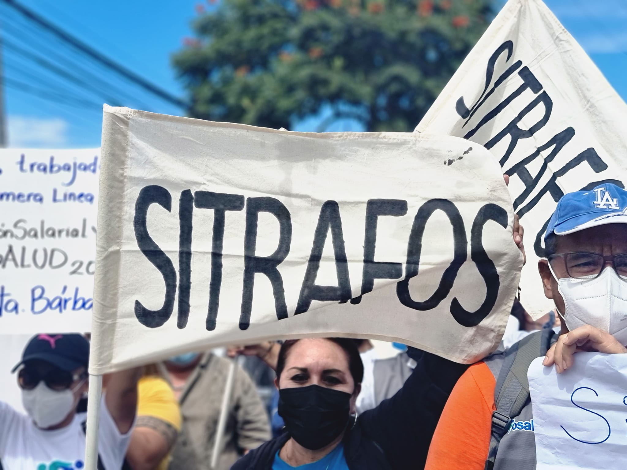 Empleados de FOSALUD piden al Gobierno y Asamblea Legislativa incluir el bono salarial por su trabajo en la pandemia en la Ley de Salarios vigente. Foto: Cortesía.