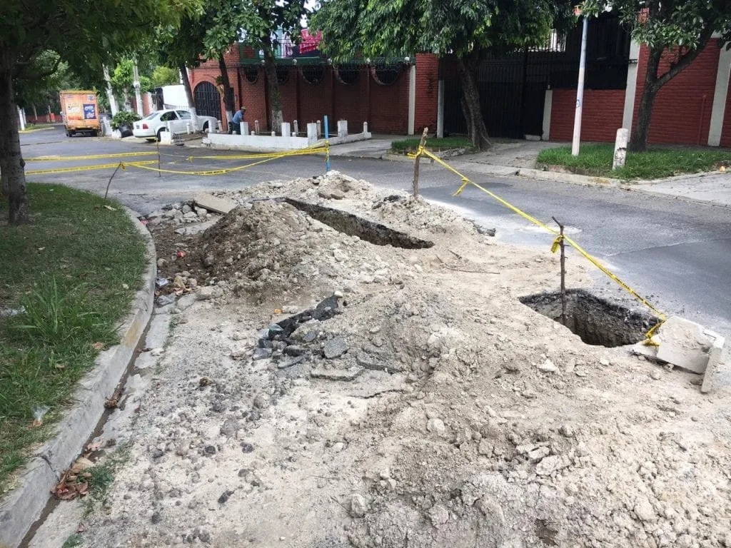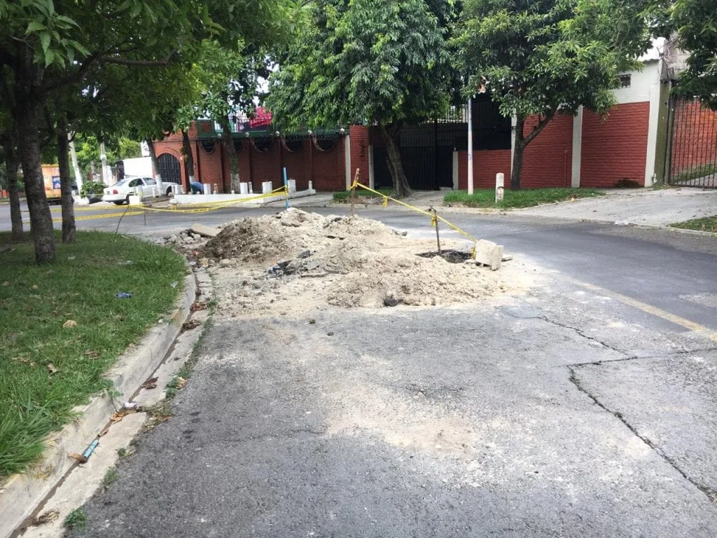 Residentes de la calle Zenzotle, en las cercanías del Estadio Cuscatlán, en San Salvador confirmaron a KL COMUNIDAD, que cuentan con varias semanas que cuadrillas de trabajadores de la Administración Nacional de Acueductos y Alcantarillados (ANDA) dejaron los trabajos inconclusos en la zona, luego de reparar una fuga de agua.