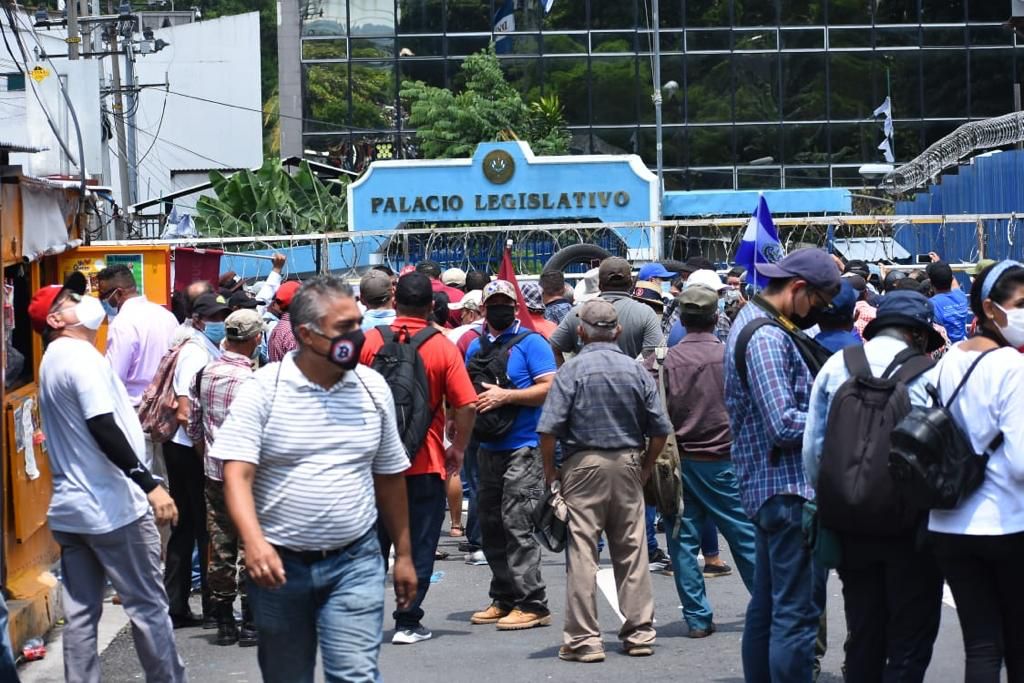 Veteranos y organizaciones civiles se concentraron en las afueras de la Asamblea Legislativa para exigir a los Diputados aumento de pensión. Foto: YSKL